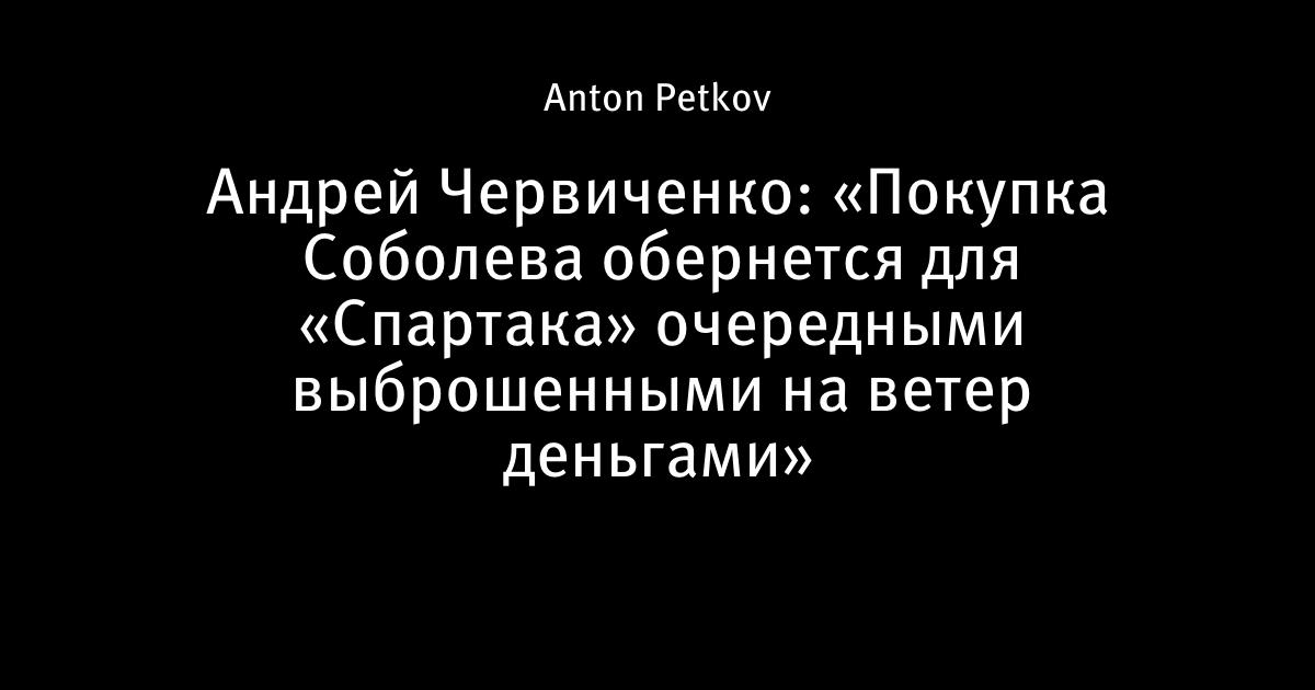 Бывший президент «Спартака» Андрей Червиченко прокомментировал информацию СМИ о том, что красно-белые выкупили у «Крыльев Советов» нападающего Александра Соболева, который с конца января выступал за столичный клуб на правах аренды.