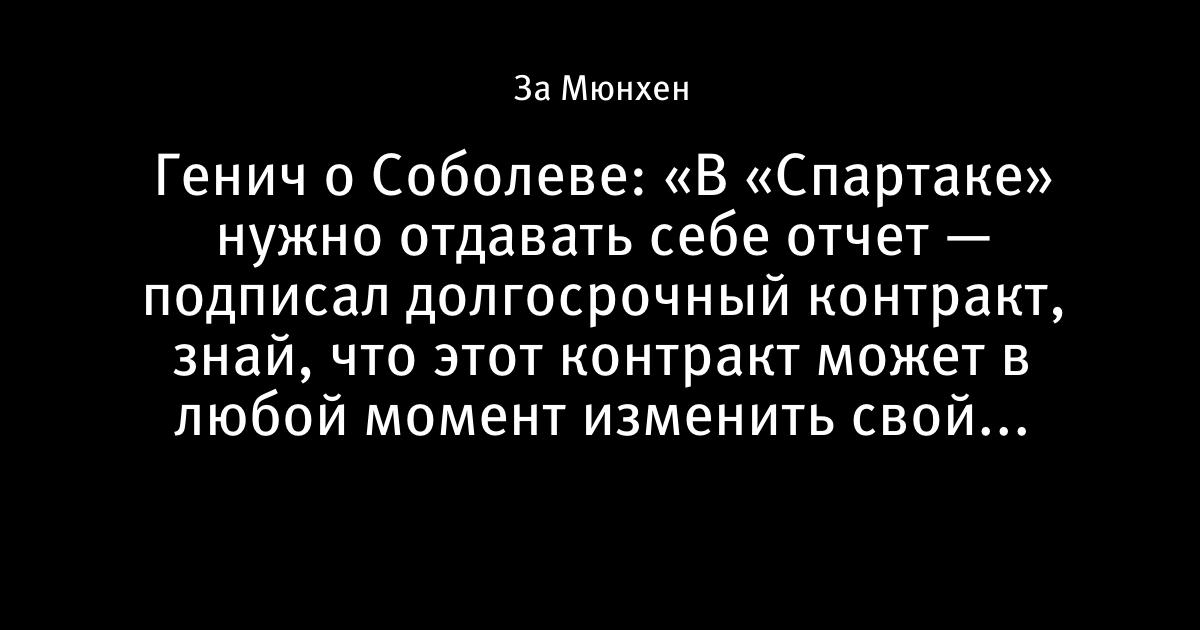 Генич о Соболеве: «В «Спартаке» нужно отдавать себе отчет — подписал долгосрочный контракт, знай, что этот контракт может в любой момент изменить свой статус»