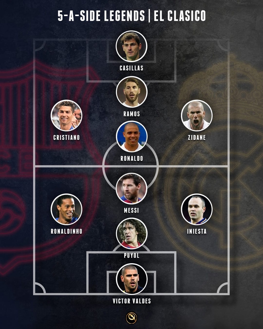 Твиттер Globe Soccer Awards опубликовал интересный вариант составов на класико. "Реал" и "Барселона" представлены только пятью игроками, но зато какими! Не будет преувеличением сказать, что в составы попали только легенды испанских грандов.