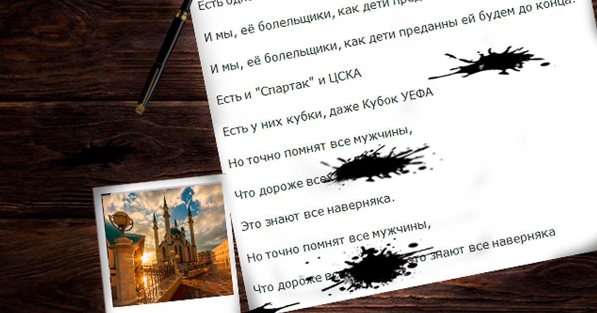Продолжаем ждать возвращение российского футбола. В этом материале не будет теста, здесь будет написан гимн клубов неаккуратным писателем, который случайно капнул чернилами на ключевые слова текста. Ваша задача узнать чья это песня. Сложность добавляет то, что здесь не только официальные гимны клубов.