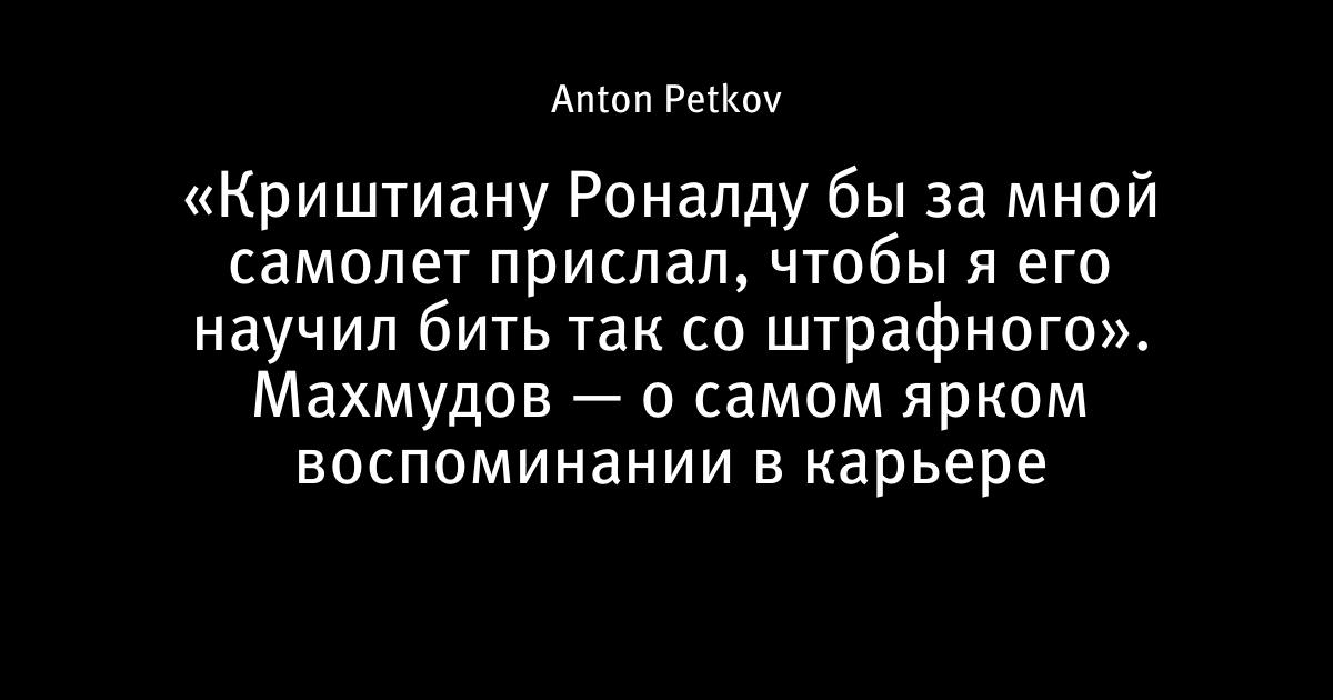 «Криштиану Роналду бы за мной самолет прислал, чтобы я его научил бить так со штрафного». Махмудов — о самом ярком воспоминании в карьере