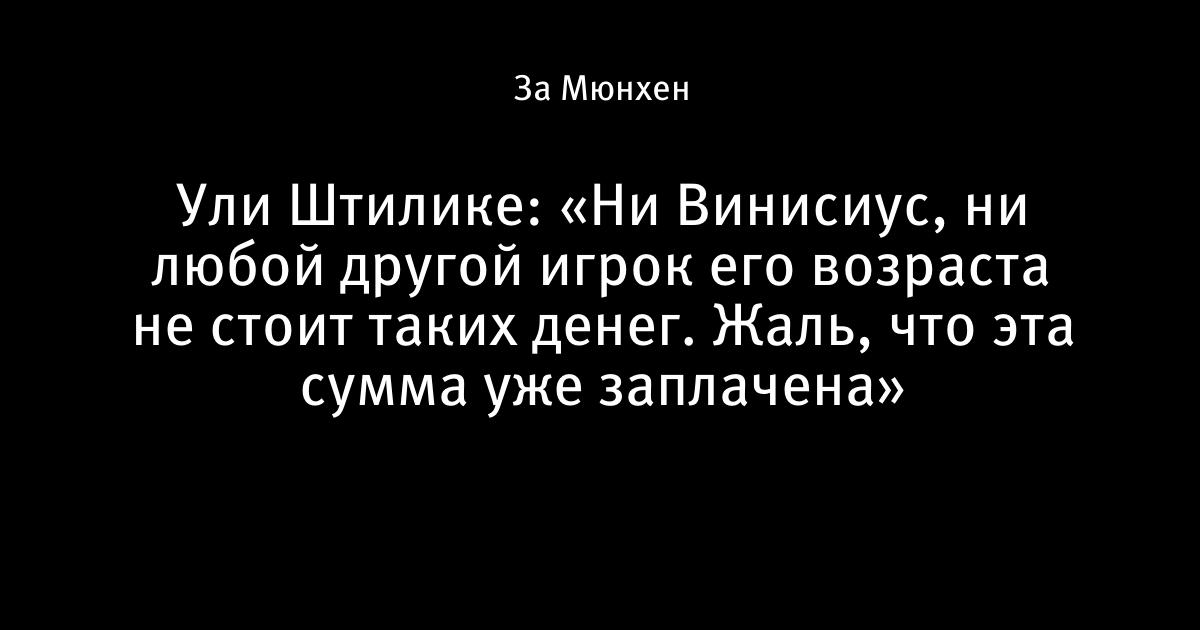 Ули Штилике: «Ни Винисиус, ни любой другой игрок его возраста не стоит таких денег. Жаль, что эта сумма уже заплачена»