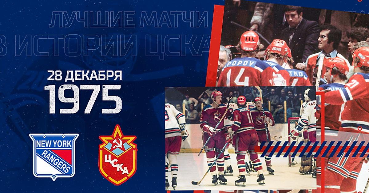 Армейцы. Предлагаем Вам вспомнить лучшие матчи в истории ЦСКА. Матчи, в которых ковалась история ЦСКА. Матчи, о которых нельзя забыть. Именно из-за таких матчей мы любим хоккей! Сегодня вспоминаем игру на «Мэдисон сквер гарден», которая открывала первую в истории хоккея серию матчей между советскими клубами и клубами НХЛ. 18 декабря 1975 года ЦСКА одержал красивую победу над «Нью-Йорк Рейнджерс» со счетом 7:3. Владислав Третьяк отразил 38 бросков по своим воротам. У армейцев по дублю на свой счет записали Владимир Петров и Владимир Викулов. По разу отличились Борис Михайлов и Борис Александров, а Валерий Харламов забросил шайбу, которая до сих пор входит в число лучших за всю историю хоккея