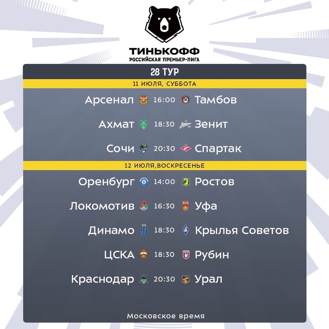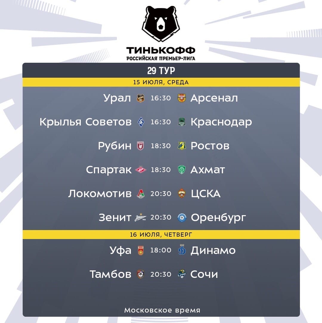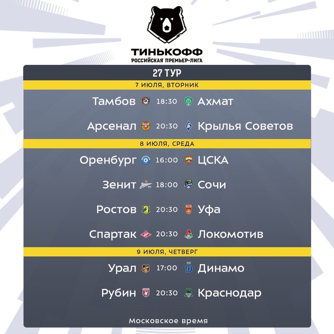 Сезон Тинькофф Российской Премьер-Лиги 2019/20 возобновится 19 июня матчем «Крылья Советов» – «Ахмат». Последний тур состоится 22 июля.