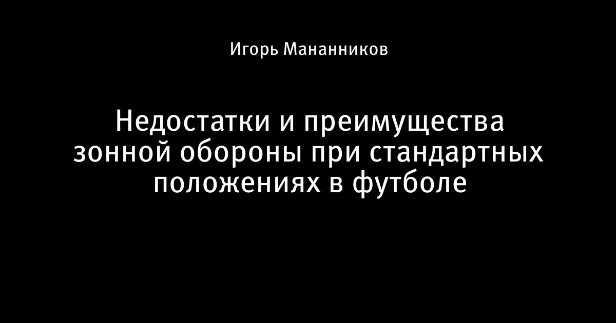 Почти во всех своих командах моя деятельность была связана со "стандартами". В этой статье хочется рассмотреть главные, по моему мнению, недостатки и преимущества зонной обороны при стандартных положениях в футболе.