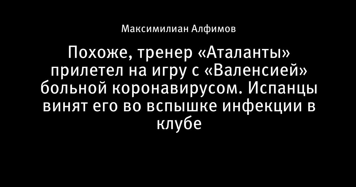 Похоже, тренер «Аталанты» прилетел на игру с «Валенсией» больной коронавирусом. Испанцы винят его во вспышке инфекции в клубе