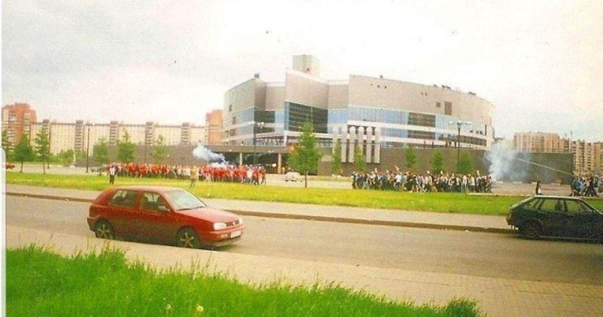 Сбор на станции метро ПБ, на пустыре за Ледовым дворцом, собрал около 180-200 щей зенитовского хулиганья в очень неплохой вариации. Лично меня сразу же порадовали две вещи: во-первых, наличие очень грамотной организации (чего, надо заметить, нашему движу довольно давно не хватало), во-вторых, появление пускай даже небольшого числа очень олдовых людей, которых я уже давно в таком месте увидеть не ожидал.