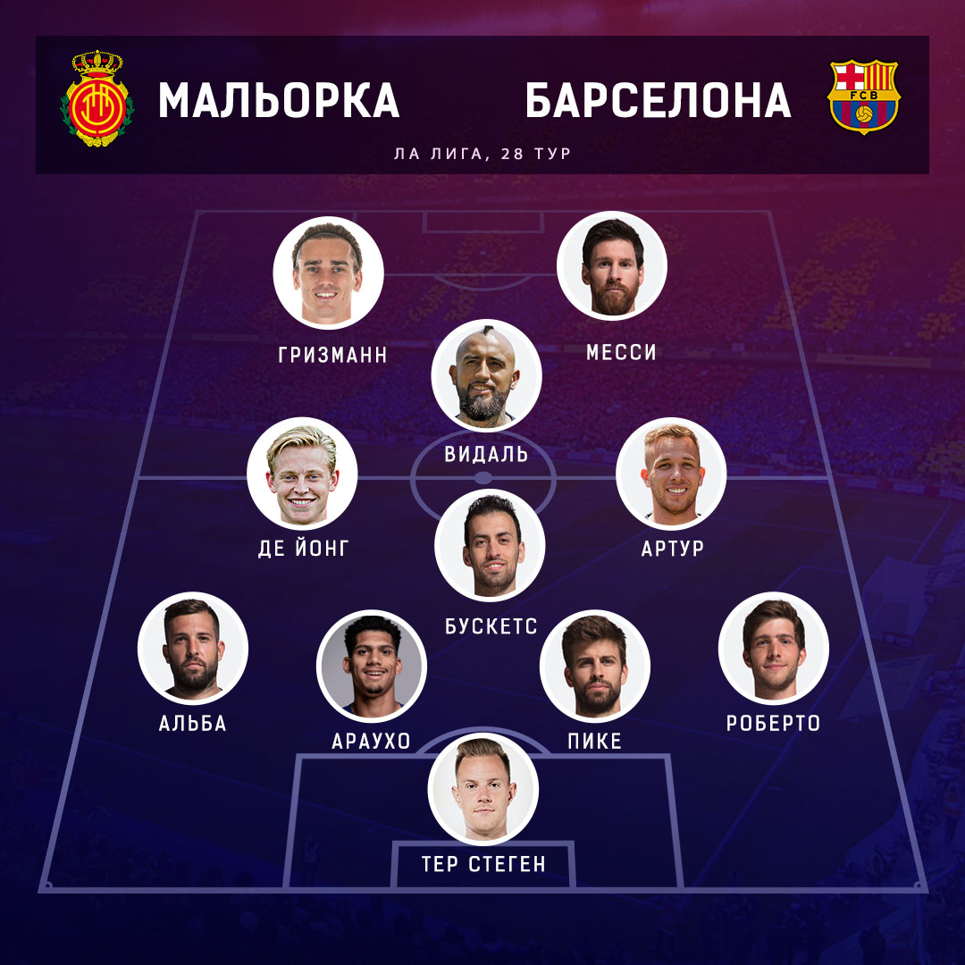 📌Видаль или Артур, Брэйтуэйт или Суарес? Выбираем состав «Барсы» на матч против «Мальорки» 👍👎