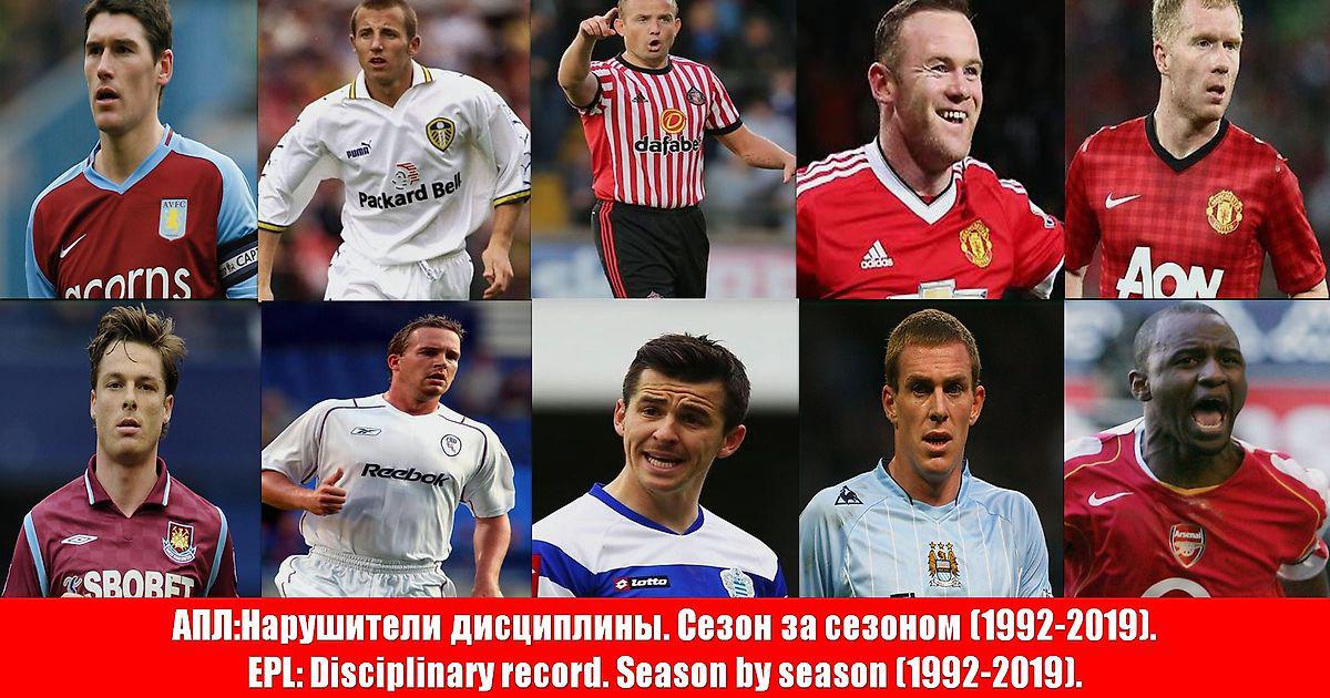 Давайте посмотрим, а сколько набирали мастера получения красных и желтых карточек в предыдущих сезонах (1992-2019).