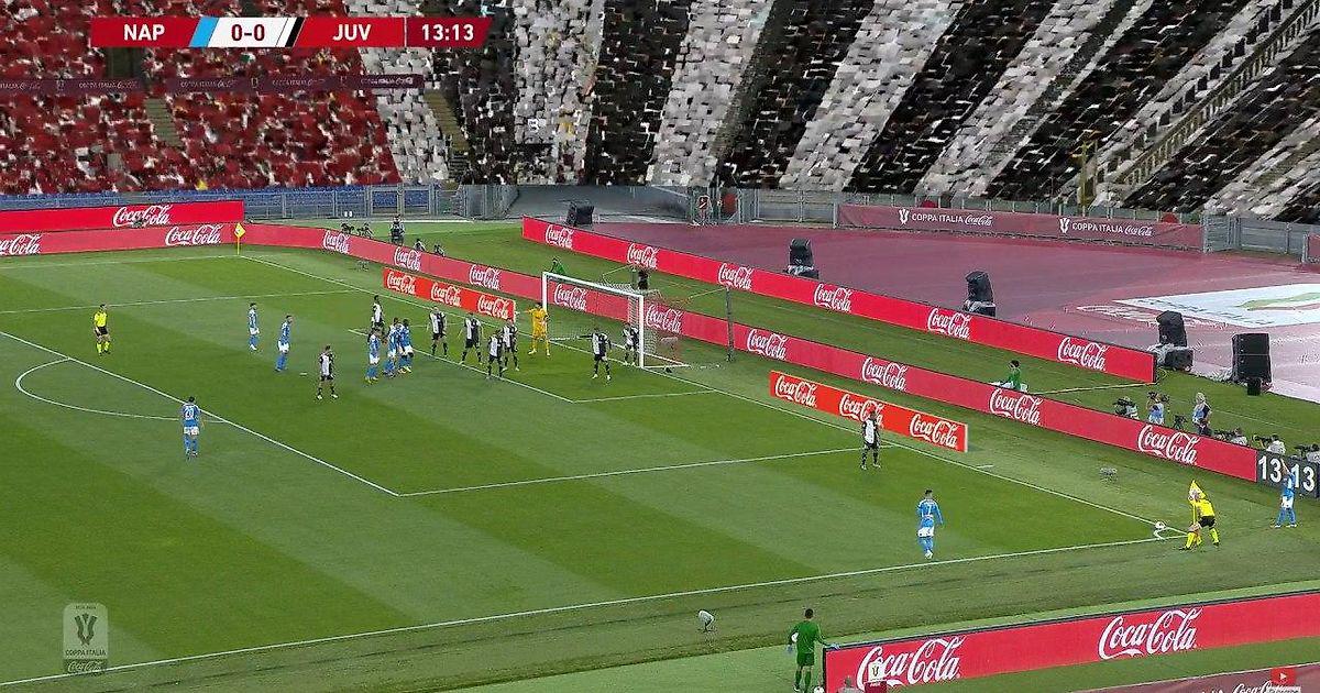 В начале матча, конечно, не обошлось без демонстрации лого Кубка Италии и спонсора (Coca-Cola).