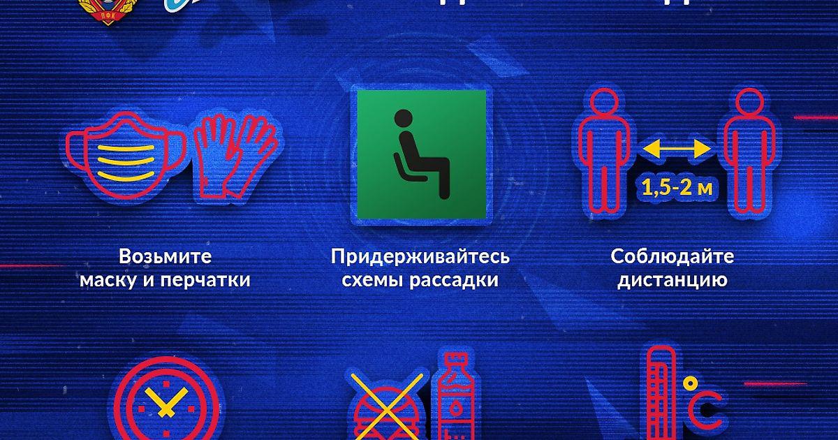 Отправляясь на матч, не забудьте взять с собой маску и перчатки.Они понадобятся вам как в общественном транспорте, так и на стадионе.Находясь на секторе, пожалуйста, оставайтесь в маске и перчатках на протяжении всего матча.