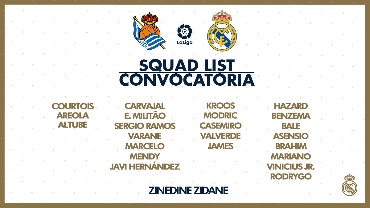 «Реал» опубликовал заявку на матч 30-го тура чемпионата Испании против «Сосьедада».