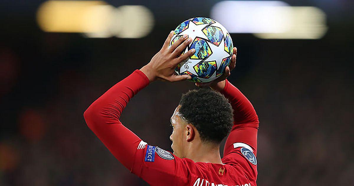 Как только мяч вброшен, Вейналдум совершает рывок в сторону бросающего и перекрывает вариант для этой передачи, а Джо Гомес прессингует адресата мяча.