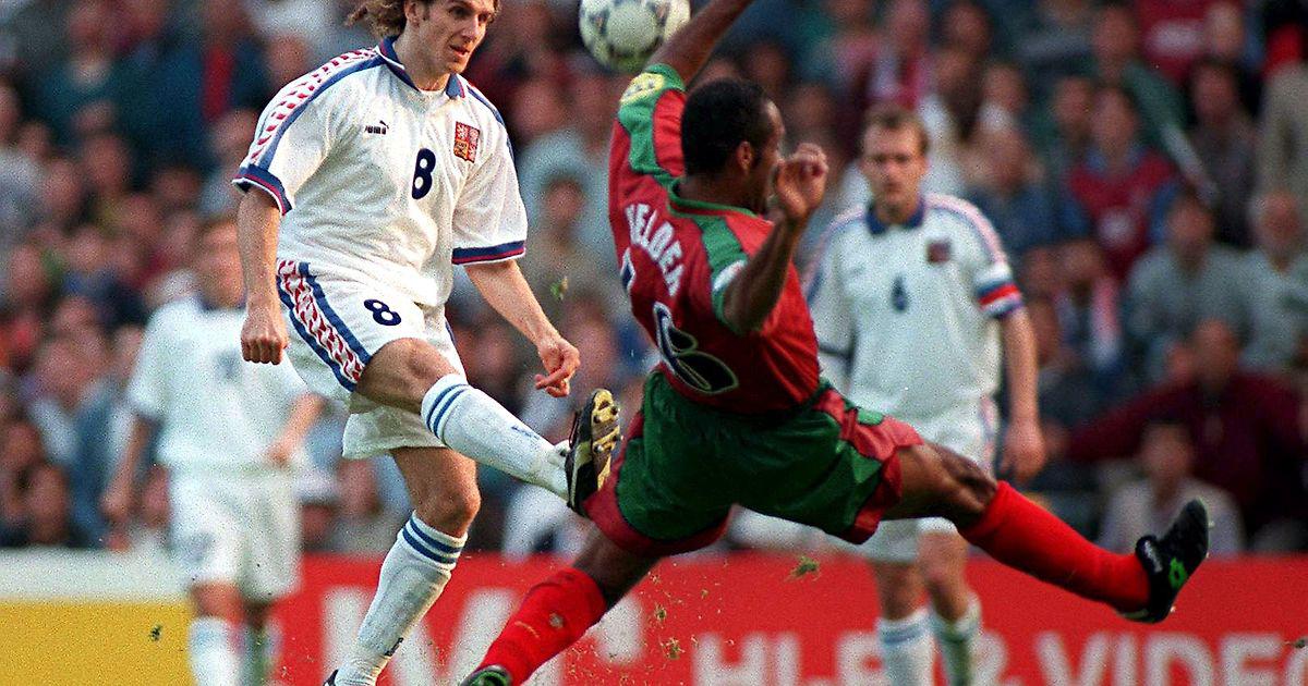 Кстати, это один из сего четырех голов в 1/4 финала Евро-1996. Чехи выиграли у Португалии 1:0. немцы у хорватов 2:1, а два других матча (Англия – Испания, Голландия – Франция) вообще обошлись без забитых мячей.