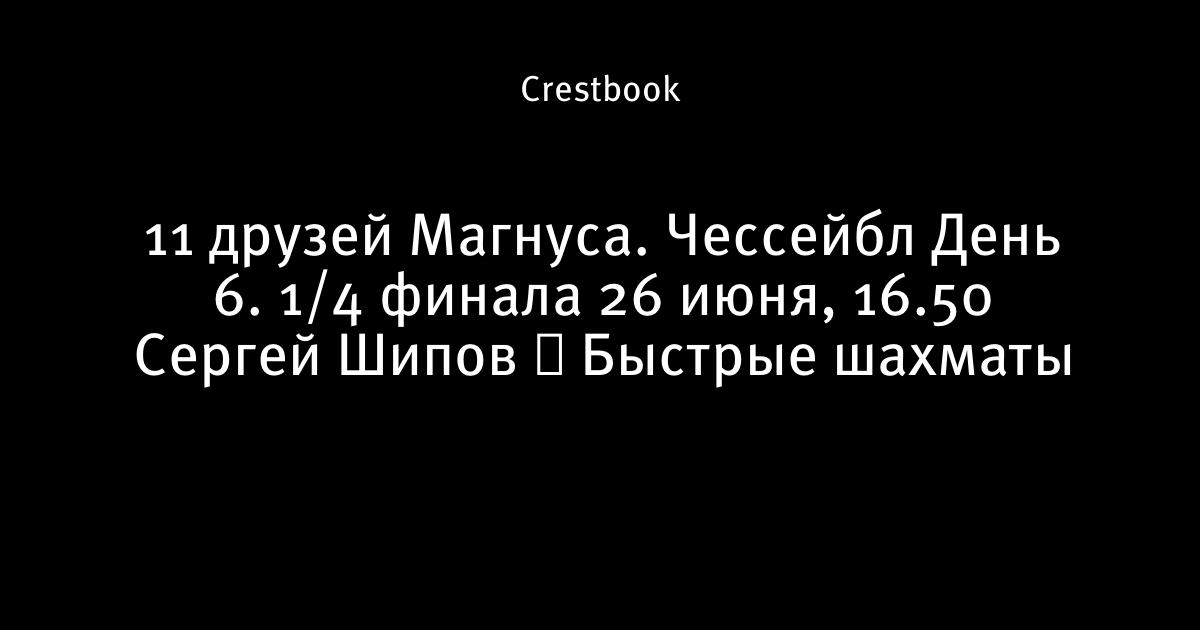 11 друзей Магнуса. Чессейбл 🏆 День 6. 1/4 финала ⏰ 26 июня, 16.50 🎤 Сергей Шипов ♕ Быстрые шахматы