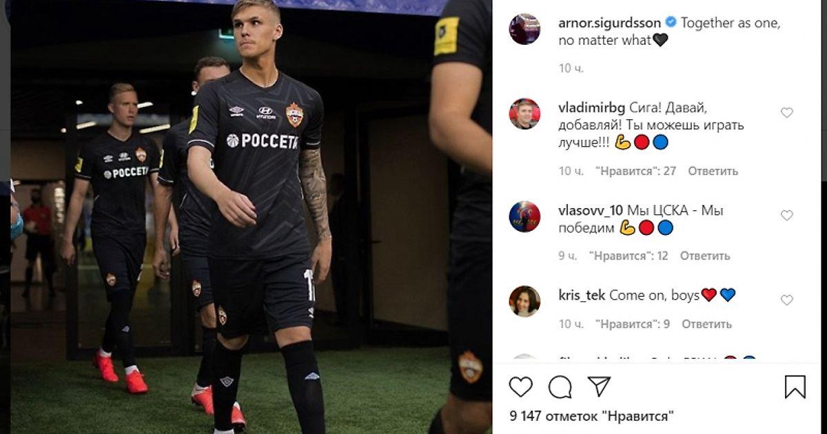 21-летний исландский полузащитник московского ЦСКА Арнор Сигурдссон сделал новую публикацию в «Инстаграме», прикрепив фото с матча 24-го тура Российской Премьер-Лиги с «Динамо», завершившегося вничью – 0:0.