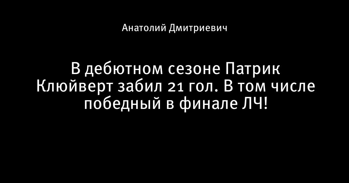 В дебютном сезоне Патрик Клюйверт забил 21 гол. В том числе победный в финале ЛЧ!