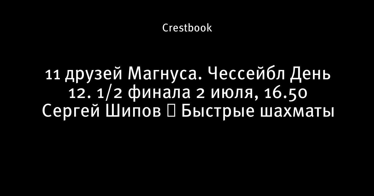 11 друзей Магнуса. Чессейбл 🏆 День 12. 1/2 финала ⏰ 2 июля, 16.50 🎤 Сергей Шипов ♕ Быстрые шахматы