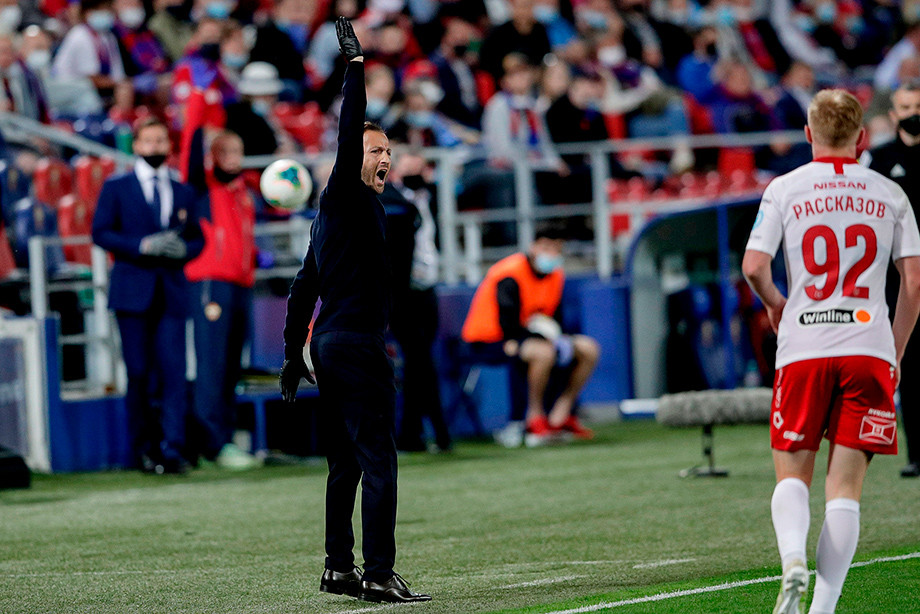 Но всё равно чувствовалось, что между ним и командой есть барьер. Показательным был момент, когда в игре была пауза и большая часть игроков подошла к тренерской скамейке выпить воды. Гончаренко прошлых матчей обязательно бы воспользовался этим, чтобы дать указания команде. В матче со «Спартаком» же тренер ушёл под козырёк и не разговаривал с командой.