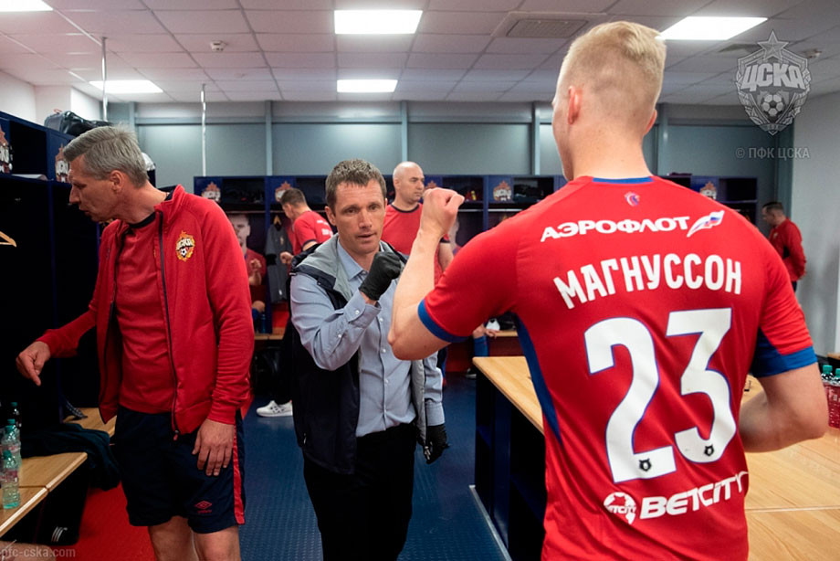 Во время одной из атак, когда Обляков не отдал пас на пустые ворота, а принял решение ударить, тренер ЦСКА очень расстроился и показал полузащитнику жестом бинокль, призывая его раскрыть глаза.