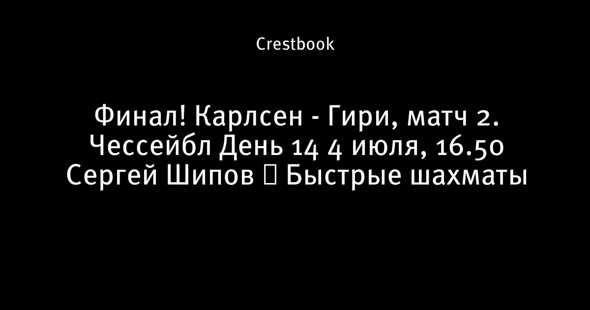 Финал! Карлсен - Гири, матч 2. Чессейбл 🏆 День 14 ⏰ 4 июля, 16.50 🎤 Сергей Шипов ♕ Быстрые шахматы