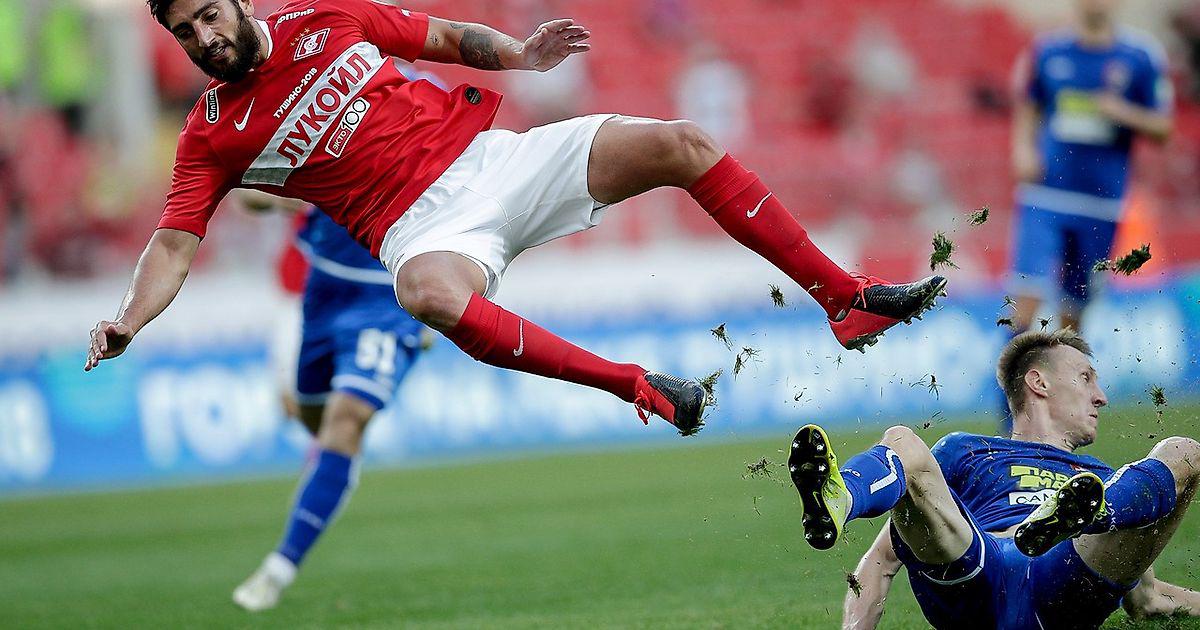 Затем голевой момент создали спартаковцы: Рассказов тонким пасом вывел Соболева один на один с Шелией — увы, завершающий удар у Александра не получился точным. Потом опасный удар со штрафного нанес Жиго. Но вместо второго гола москвичи пропустили разящую контратаку. Ее завершил с близкого расстояния Чуперка.