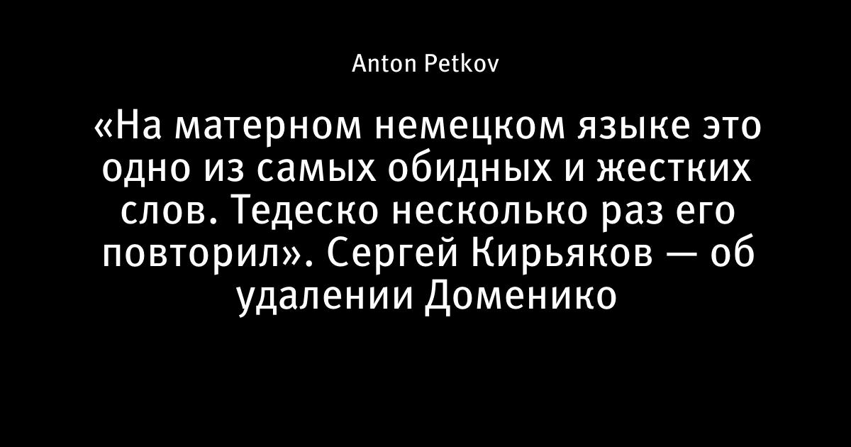 «На матерном немецком языке это одно из самых обидных и жестких слов. Тедеско несколько раз его повторил». Сергей Кирьяков — об удалении Доменико