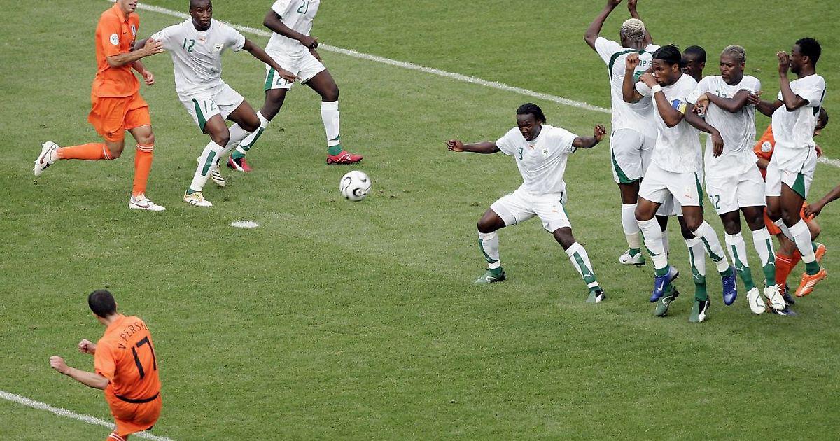 22-летний Робин Ван Перси засаживает мяч в ворота сборной Кот-д'Ивуара в матче чемпионата мира-2006. Без шансов!