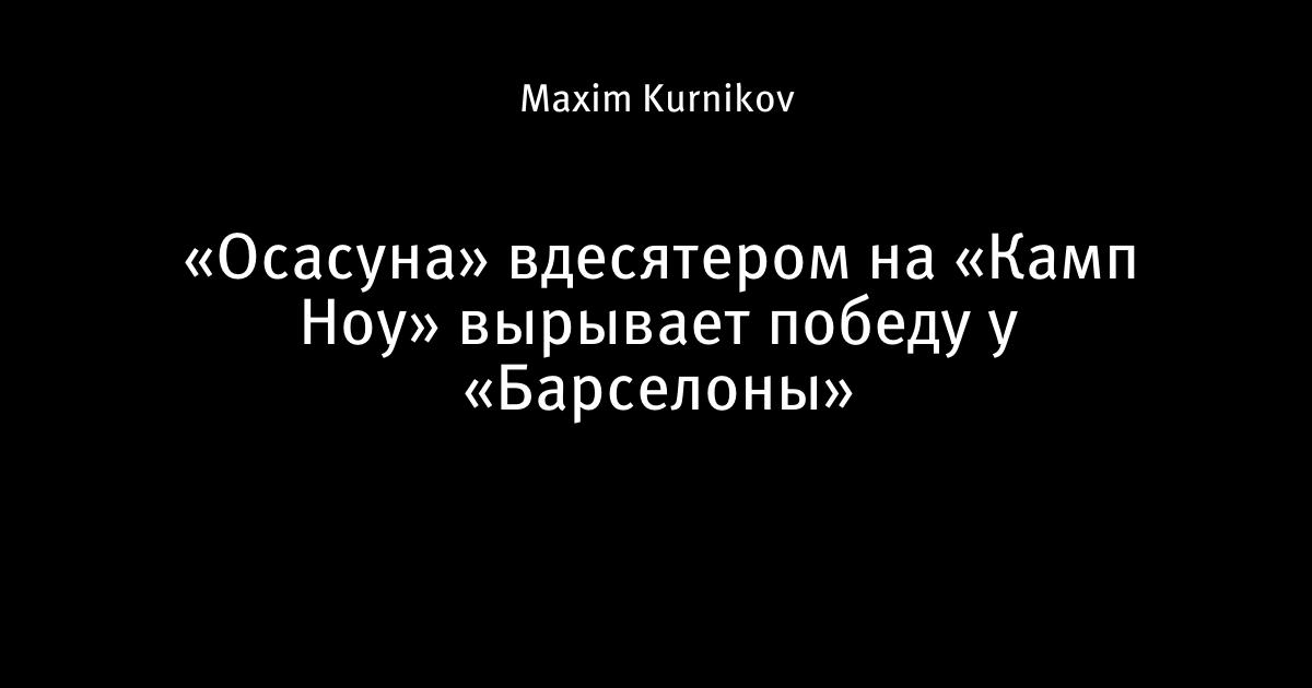 В последний раз «Осасуна» обыгрывала «Барселону» восемь с половиной лет назад в Памплоне. Отчёт о том матче писал тот же автор, что и сегодня. В таком случае у нас в редакции говорят: «Везёт на Осасуны».