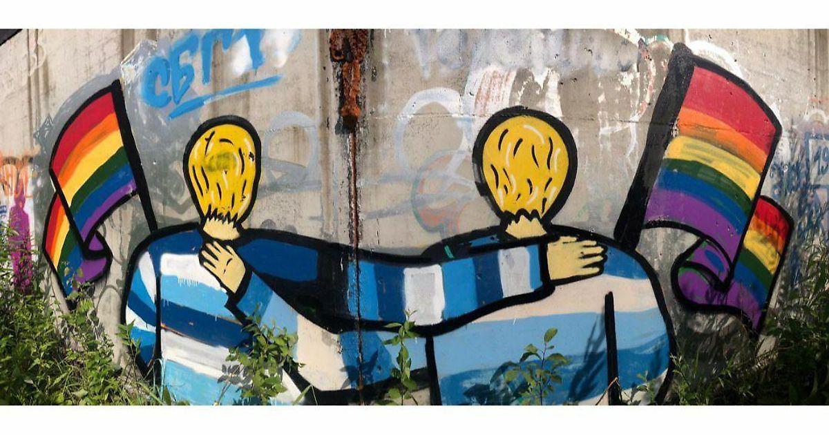 Спартаковцы нарисовали два граффити и расклеили по городу много стикеров, в которых скрестили две аббревиатуры – «сбг» (сине-бело-голубые) и «лгбт» (лесбиянки-геи-бисексуалы-трансгендеры). И граффити, и стикеры были выполнены в радужных цветах.