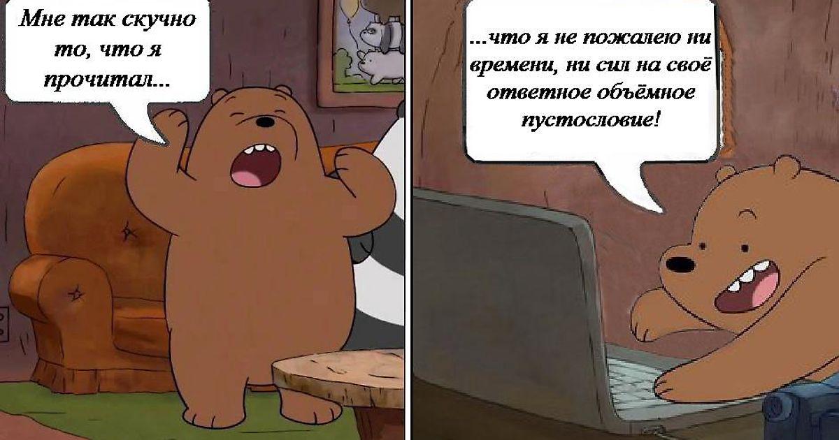 После того, как однажды Медведь всю ночь писал мне сообщения о том, что моя точка зрения ему не интересна в принципе, этот персонаж не вызывает ничего, кроме улыбки :)
