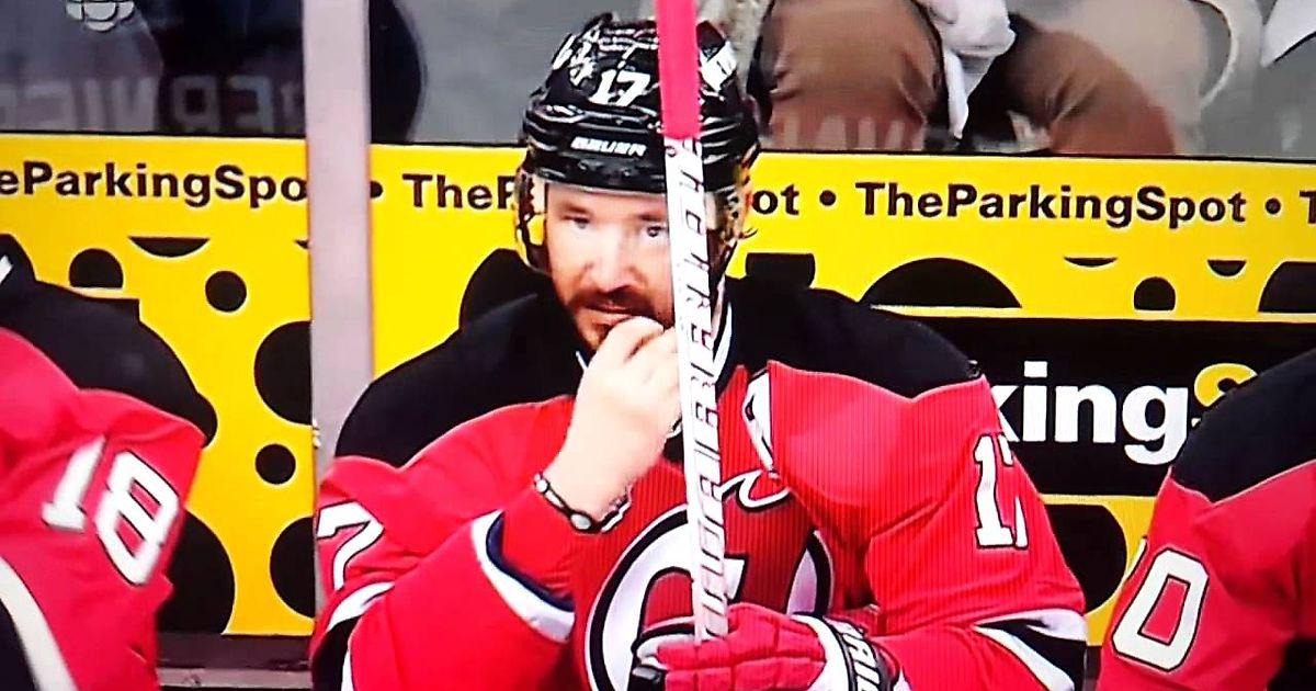 Едва ли не самый забавный момент из прошлогоднего розыгрыша Кубка Стэнли: капитан «Коламбуса» Ник Фолиньо сидит на скамейке, к нему подходит врач, и через секунду его лицо искажает гримаса.