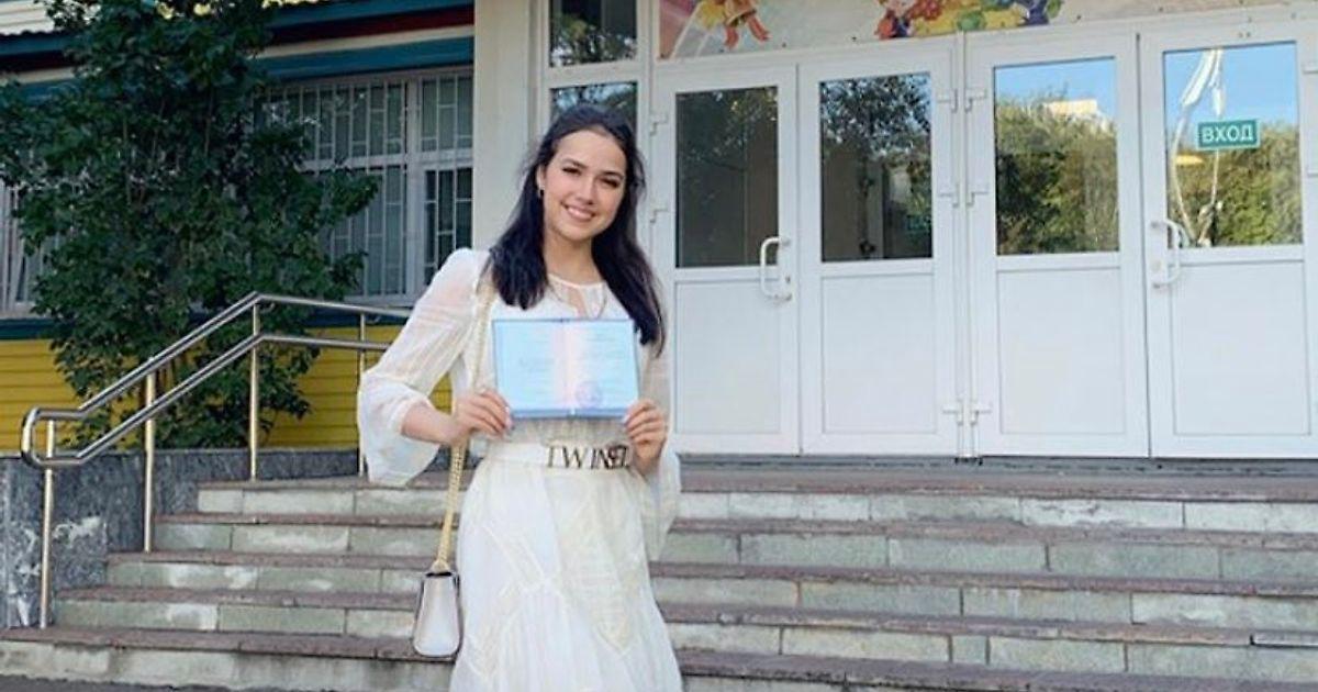 Последний пост нашей прекрасной чемпионки привлекает внимание не только новостью о получении аттестата, но и необычным луком в светлых тонах.
