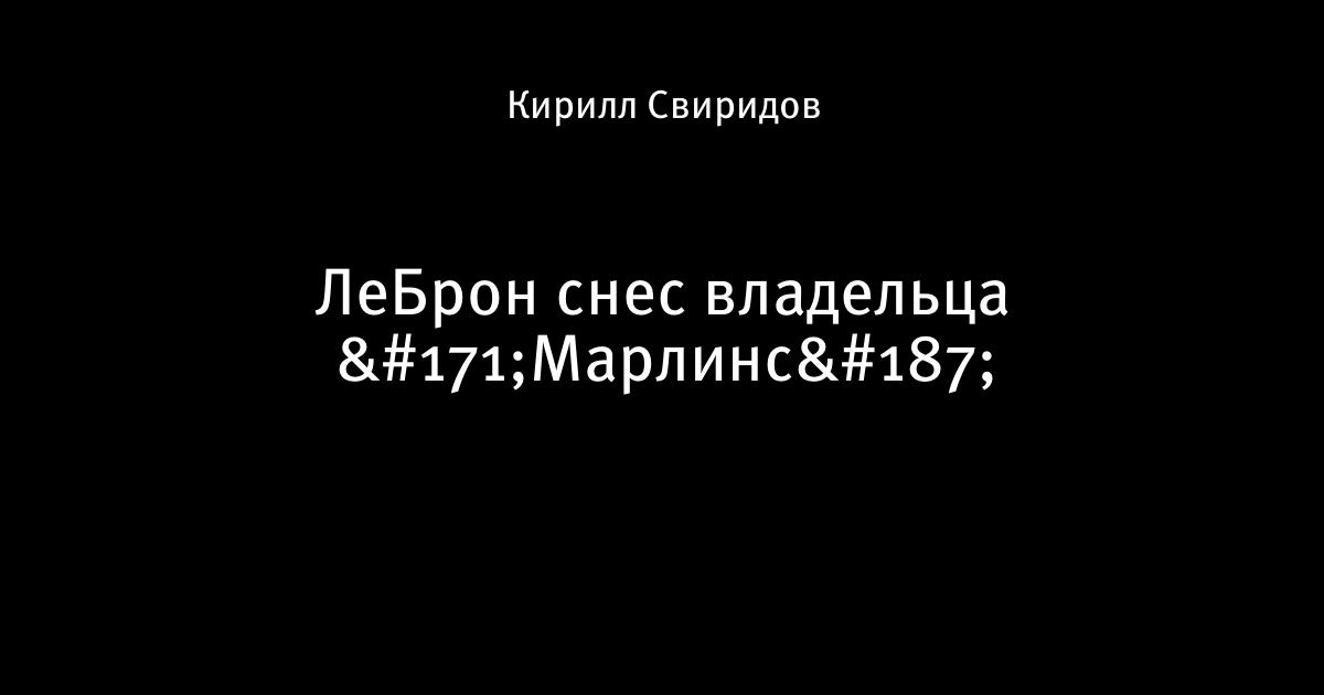20 января 2012, 12:11 ЛеБрон снес владельца «Марлинс» Автор Кирилл Свиридов Этот пост опубликован в блоге на Трибуне Sports.ru. Присоединяйтесь к крупнейшему сообществу спортивных болельщиков! Другие посты блога Баскет-ТВ Баскетбол - видео