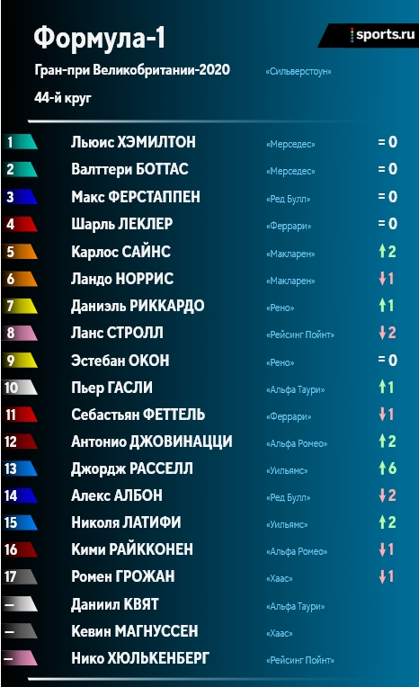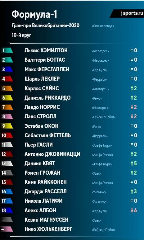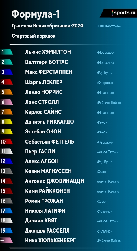 15:45 Пришло подтверждение от «Рейсинг Пойнт» – Хюлькенберг начинает гонку с пит-лейн. Что сказать, будет интересно последить за прорывом Нико на очень быстрой машине.