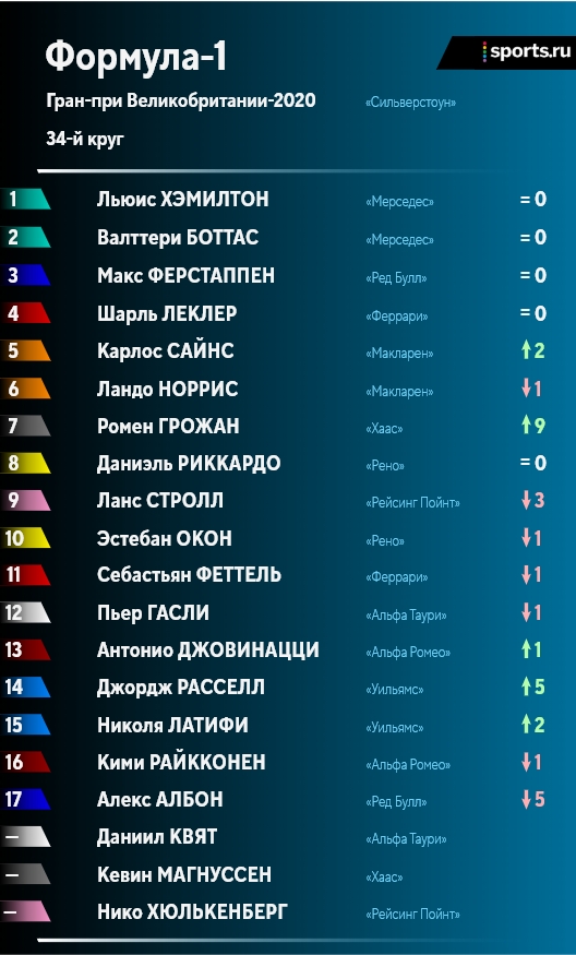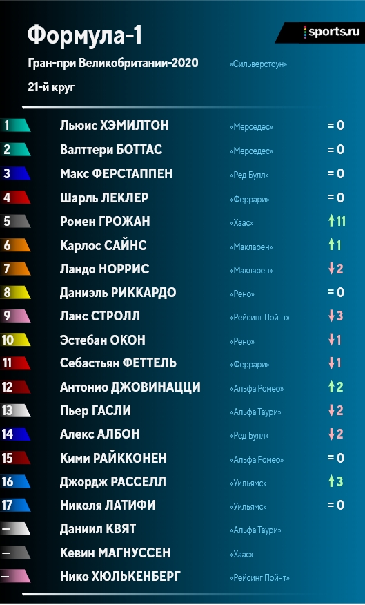 17:55 Положение в личном зачете и Кубке конструкторов.