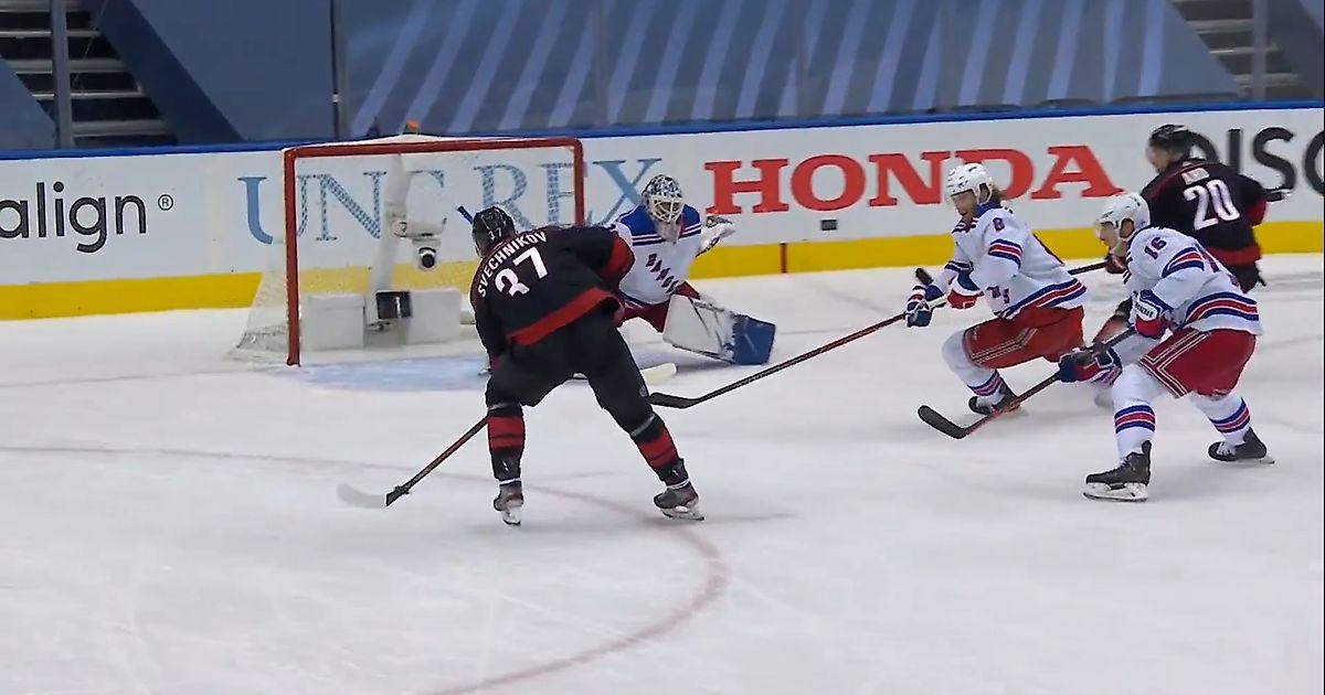 Андрей Свечников в матче против «Нью Йорк Рейнджерс» (Первый хет-трик в плэйофф в истории франшизы)