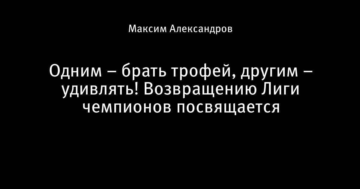 Одним – брать трофей, другим – удивлять! Возвращению Лиги чемпионов посвящается