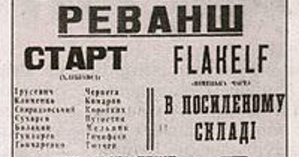 На самом деле 9 августа 1942 года встречались киевский «Старт», в состав которого вошли три бывших киевских динамовца, и команда «Flakelf» (офицеры противовоздушной обороны, а также летчики и механики киевского аэродрома).