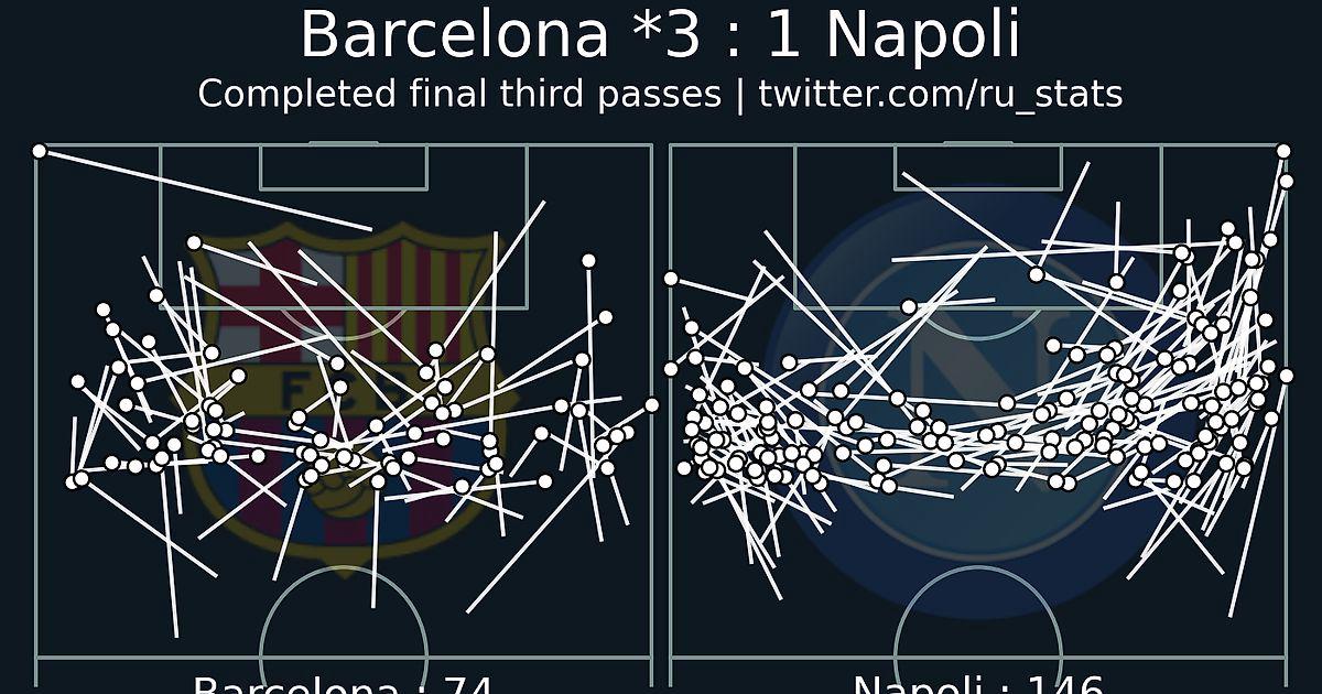 Показатель PPDA (количество передач соперника на одно прессинг действие) Наполи - 10, Барселоны - 13.5 (чем меньше цифра - тем активнее прессинг).