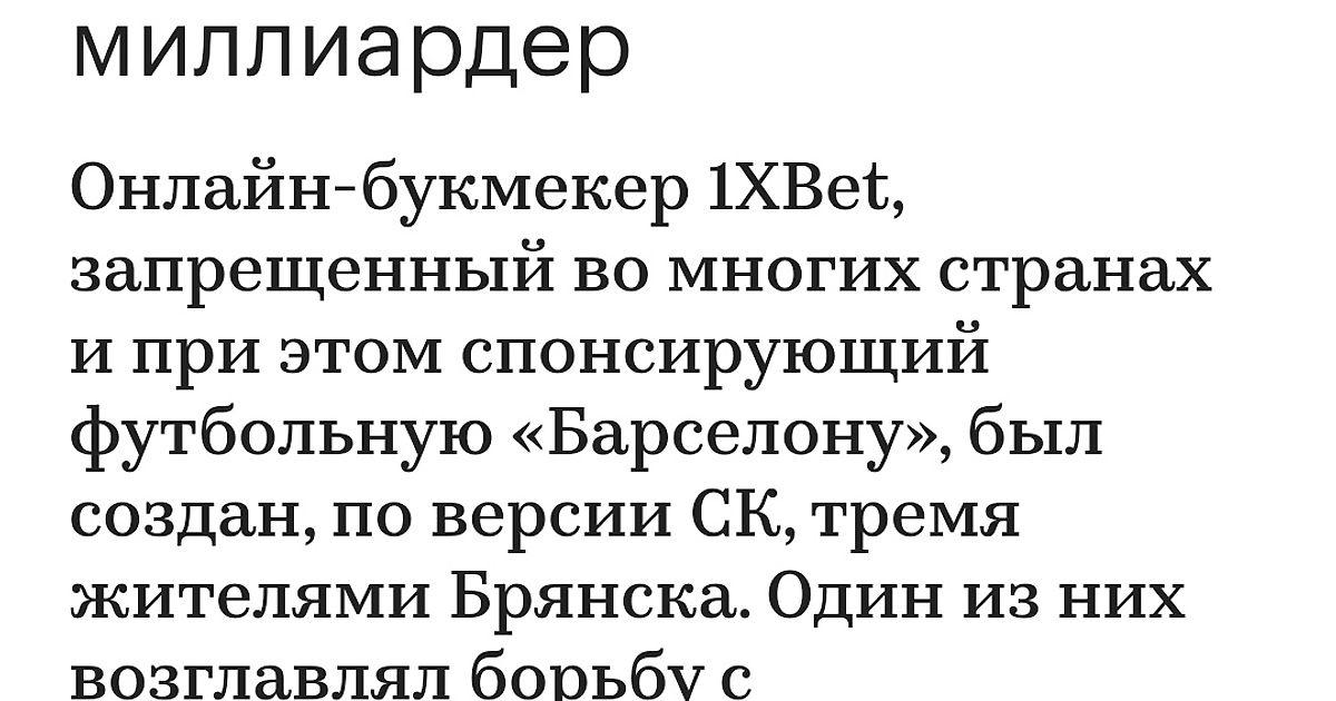 Онлайн-букмекер 1XBet, запрещенный во многих странах и при этом спонсирующий футбольную «Барселону», был создан, по версии СК, тремя жителями Брянска. Один из них возглавлял борьбу с киберпреступностью в областном главке МВД.