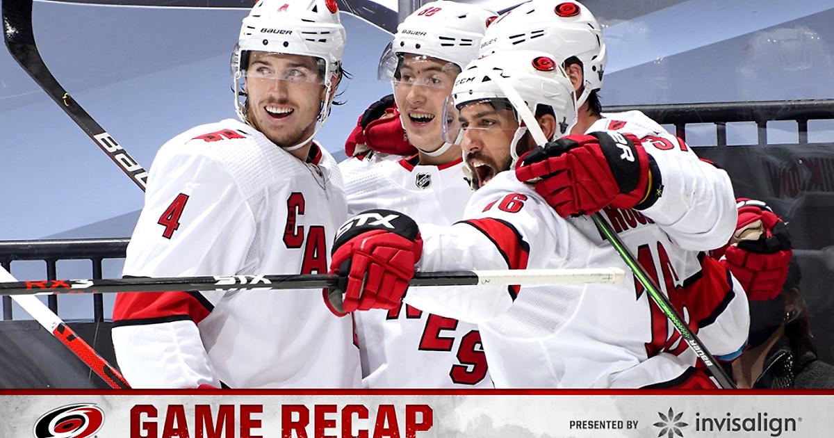 "Бостон Брюинз"-"Каролина Харрикейнз" 2:3.Дуги Хэмилтон в середине 3 периода забросил победную шайбу.Андрей Свечников набрал 2 очка (1+1),Мартин Нечас отдал 2 результативные передачи,Джеймс Раймер отразил 33 броска.У хозяев Давид Крейчи и Брэд Маршан набрали по 2 очка (1+1)."Ураганы" сравняли счёт в серии 1-1.