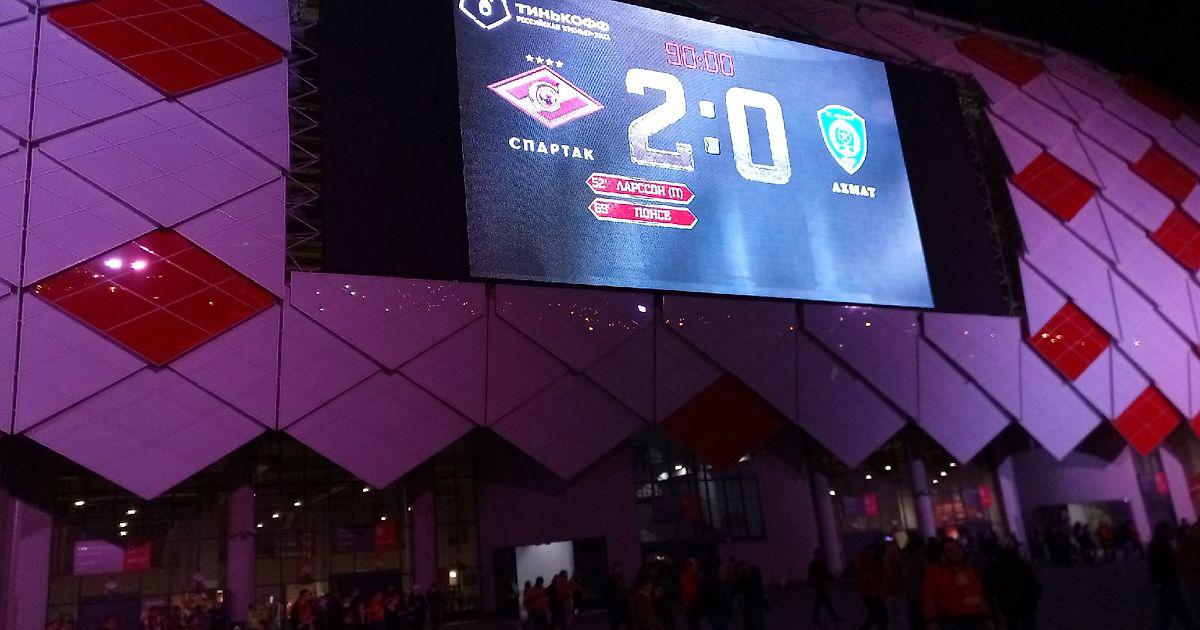 Ахмат продолжал наседать а Спартак держать мяч и периодически закидывать его вперёд. В одной из таких "закидок" гол забил Джикия. Но тут как раз вопросов нет - Джик был в таком оффсайде, что оспорить его мог бы только судья Крондл. Или Казарцев.