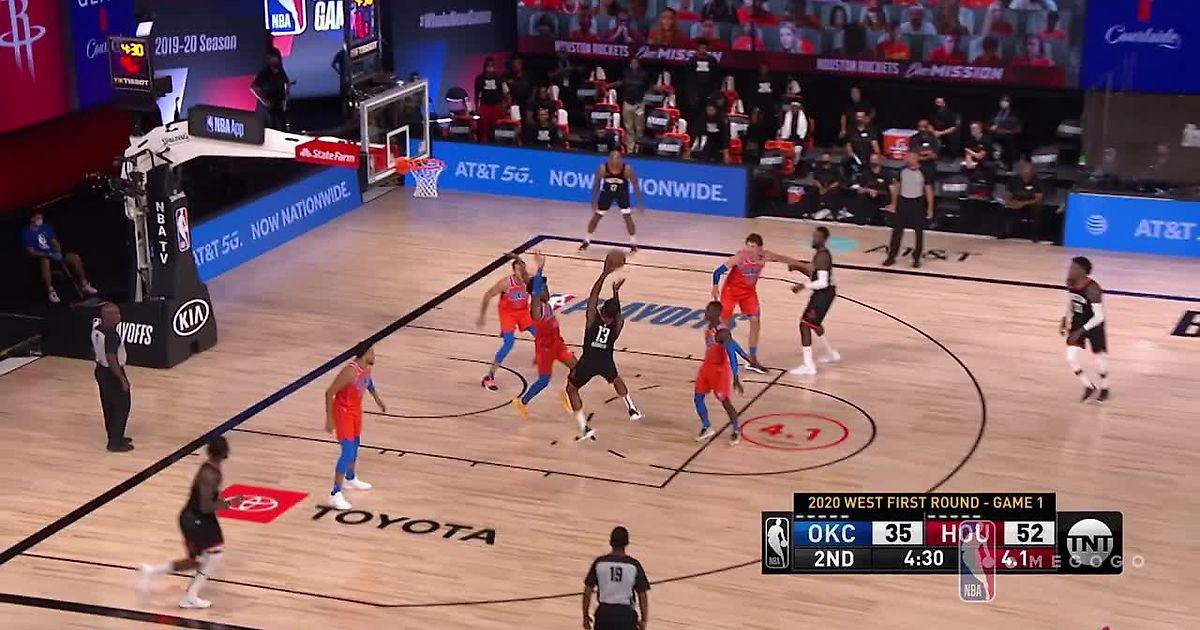 В НБА стартовала основная стадия раунда плей-офф. На видео – лучшие моменты первого матча серии 1/8 финала, в котором баскетболисты «Хьюстон Рокетс» обыграли «Оклахому-Сити Тандер» со счетом 123:108. Лучшим игроком матча стал Джеймс Харден. Атакующий защитник «Хьюстона» набрал 37 очков, а также сделал 11 подборов и три перехвата. Самым результативным игроком в составе «Оклахомы» стал Данило Галлинари, набравший 29 очков.