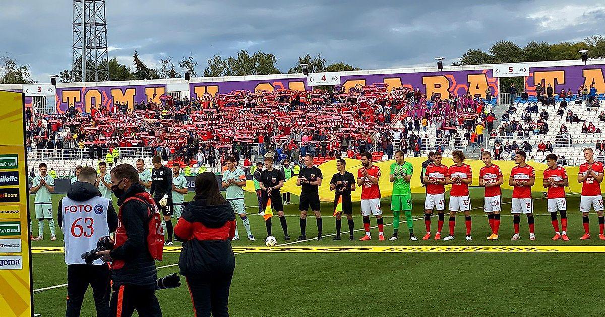 Фанаты «Спартака» на центральной трибуне стадиона “Нефтяник” в Уфе