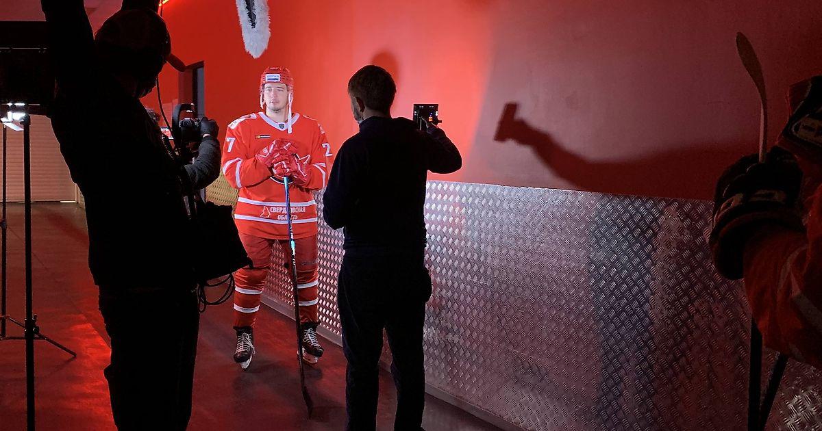 Следующей зоной стала площадка на льду (снова для КХЛ) – здесь хоккеистам предстояло сняться для визиток.