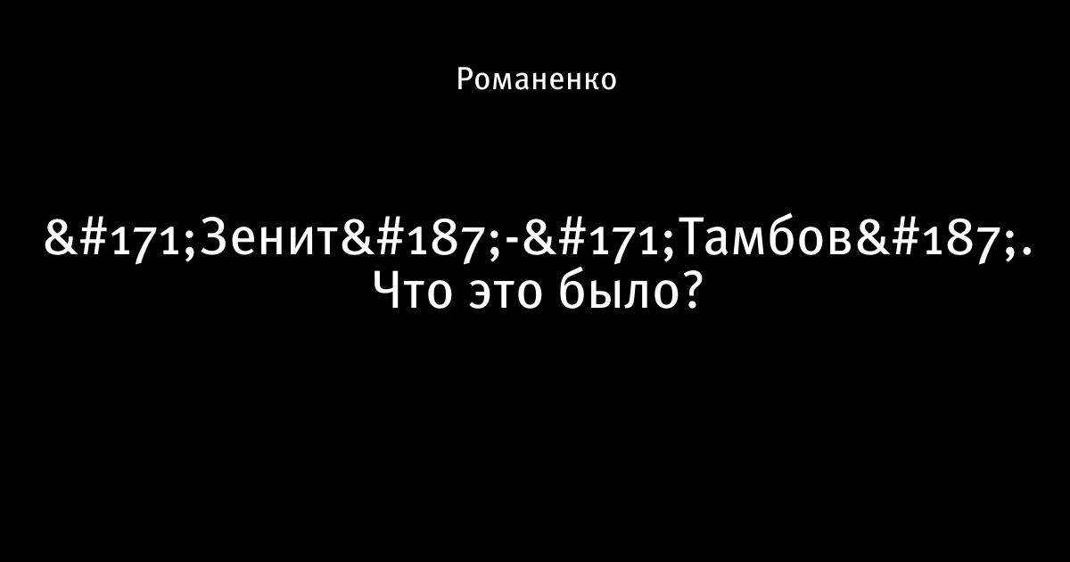 Здравствуйте! Сегодня я бы хотел поделиться своим субъективным мнением о матче четвертого тура "Зенит"-"Тамбов".