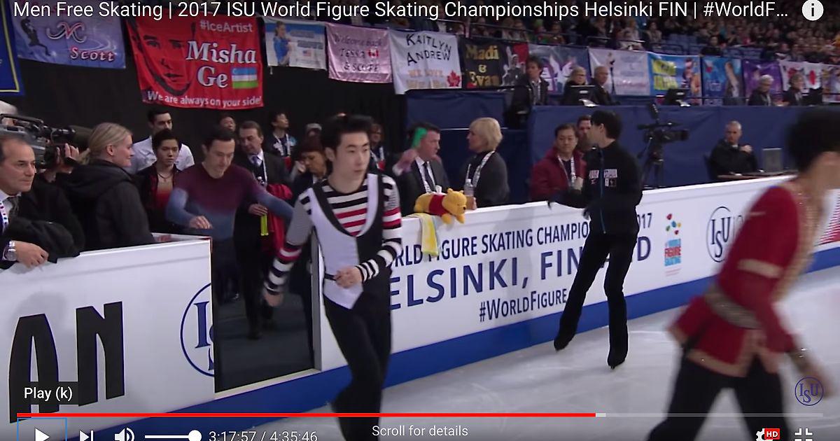 На ЧМ-17 Юзуру - 22 года, в 19 он уже был чемпионом мира и олимпийских игр, дважды его обыгрывал на последующих чемпионатах мира соученик Орсера Хавьер Фернандес и он воочию видел восход нового поколения бесстрашных. Но он снова выходит на лёд после падений и травм - он хочет первым прыгнуть четверной ритбергер.