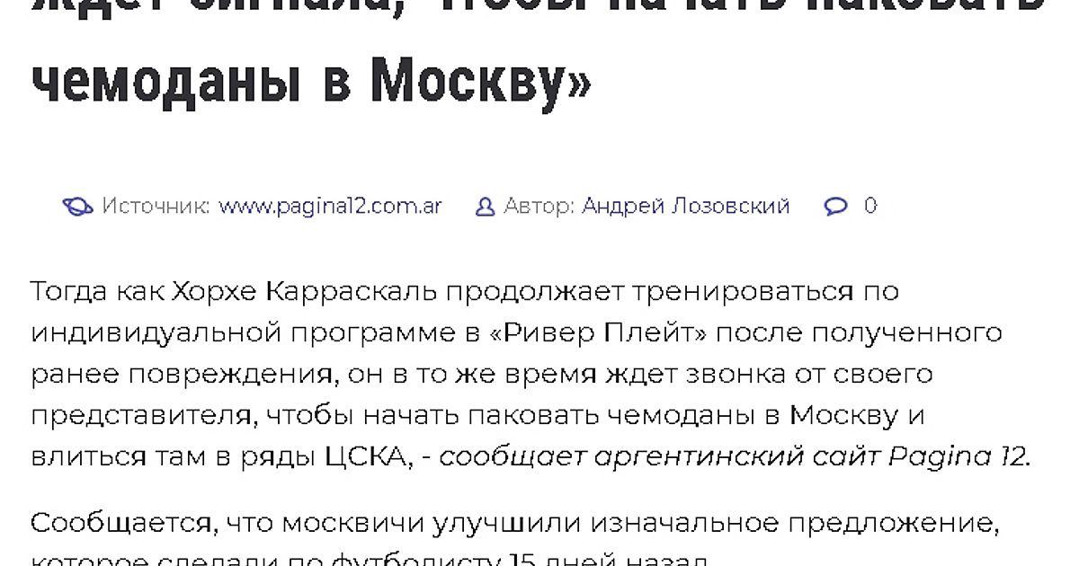 Pagina 12, Аргентина: «Карраскаль ждет сигнала, чтобы начать паковать чемоданы в Москву»