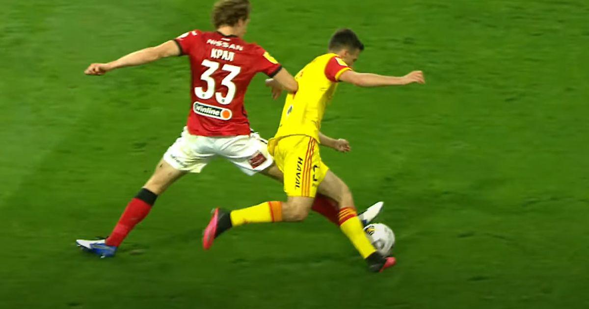 26' минута встречи, Костадинов подкатом сзади сносит Крала, это тянуло на желтую карточку. Но Матюнин опять пожалел "Арсенал".(смотреть фото 6)